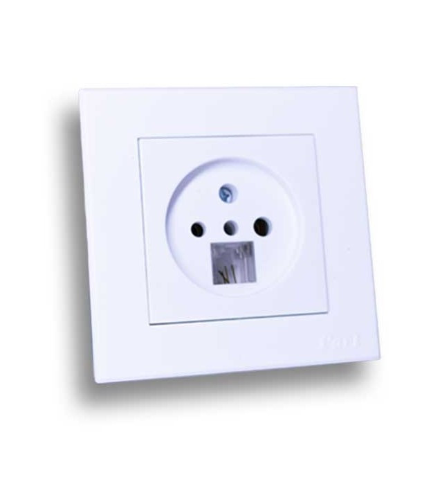 پریز تلفن دو منظوره توکار پارت الکتریک مدل تابش، نوعی پریز توکار است که امکان استفاده از تلفن را فراهم می کند و همان طور که از اسم آن مشخص است به دو شکل مورد استفاده قرار می گیرد. نحوه به کارگیری پریز دو منظوره به این صورت است که دارای یک عدد سوکت از نوع RJ11 و هم چنین پریز برق برای قرار گیری سه شاخه تلفن می باشد. اینگونه پریزها موجب شده است که شما بتوانید بدون محدودیت از تلفن هایی که ممکن است از طریق سوکت به پریز تلفن متصل شود یا اینکه دارای سه شاخه بوده و به واسطه آنها به منبع تغذیه که برق شهری می باشد، متصل شوند. این پریزها این قابلیت را نیز به شما می دهند که بتوانید به صورت همزمان از مودمی که دارای سوکت است و تلفنی که دارای سه شاخه می باشد، استفاده نمایید.